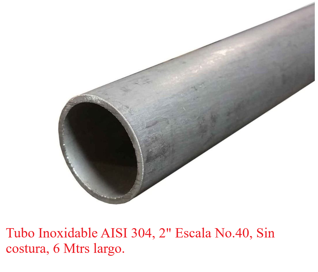 Tubo Inoxidable AISI 304, 2", Escala No.40, sin costura, 6 Mtrs largo.
